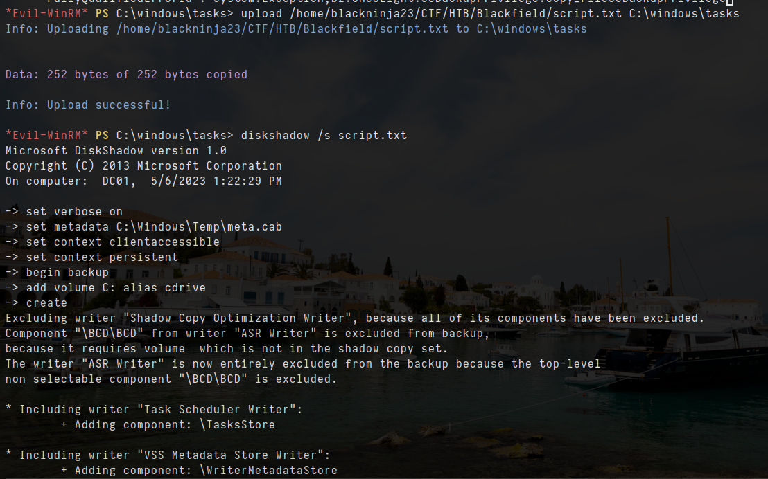 download C:\windows\tasks\sam /home/blackninja23/CTF/HTB/Blackfield/sam