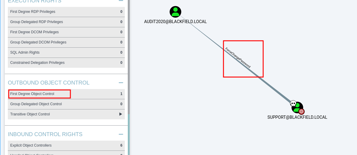 - After analysis our users in outbound object control and i found that i have right of ForceChangePassword to audit2020
