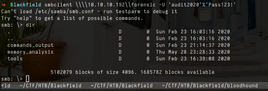 smbclient \\\\10.10.10.192\\forensic -U 'audit2020'%'Pass123!'