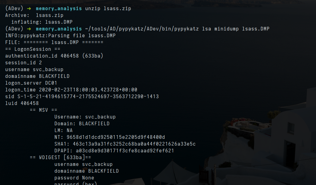 ~/tools/AD/pypykatz/ADev/bin/pypykatz lsa minidump lsass.DMP