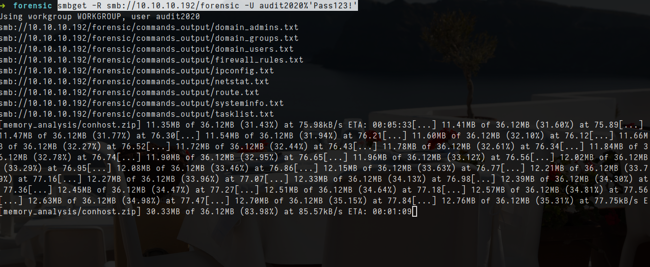 smbget -R smb://10.10.10.192/forensic -U audit2020%'Pass123!'