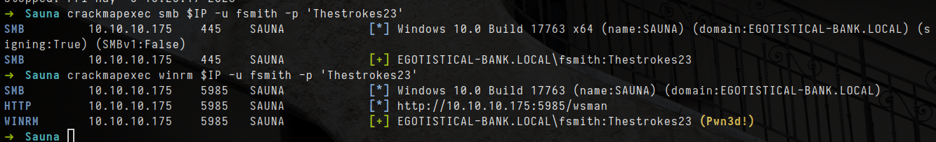 crackmapexec winrm $IP -u fsmith -p 'Thestrokes23'
