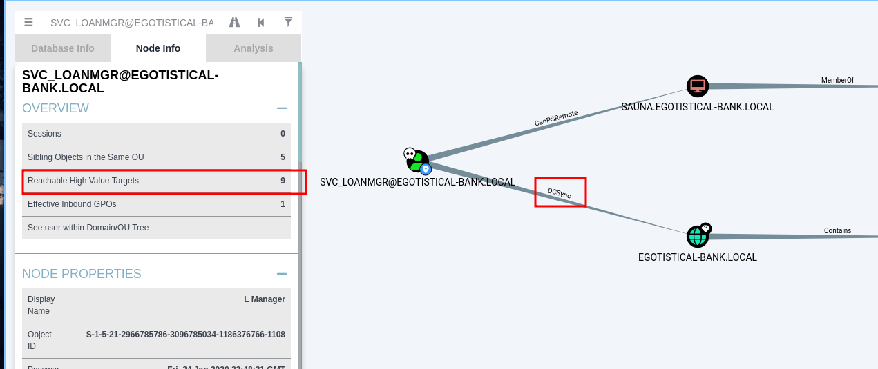 - let check into AD by mark other user unowned and mark svc_loanmgr owned