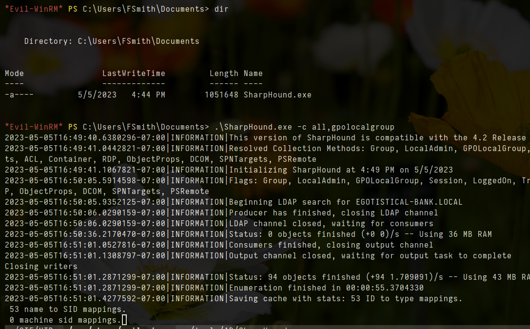 Hash.Target......: $krb5tgs$23$*HSmith$EGOTISTICAL-BANK.LOCAL$EGOTISTI...252c61