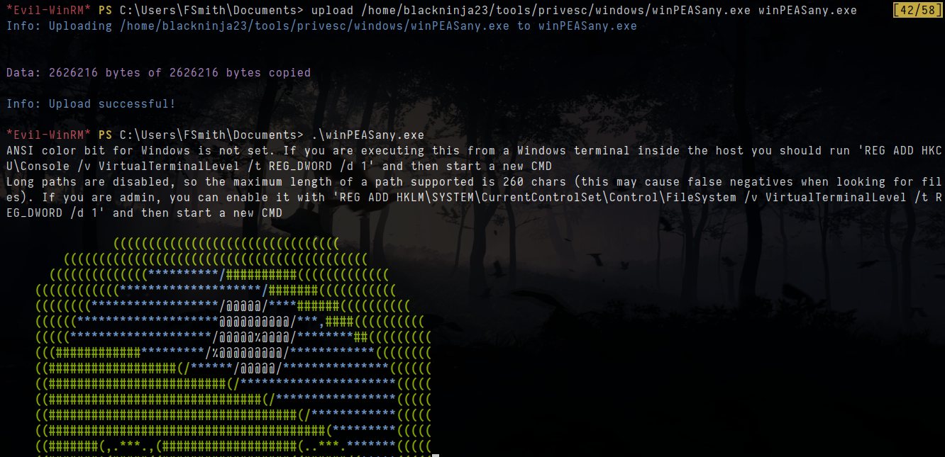 upload /home/blackninja23/tools/privesc/windows/winPEASany.exe winPEASany.exe
